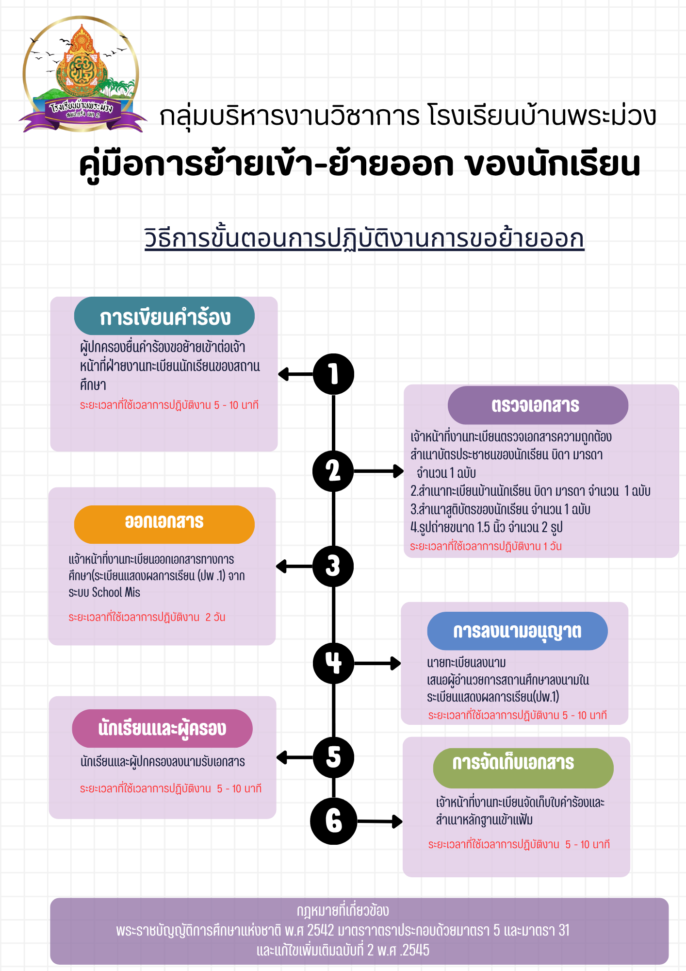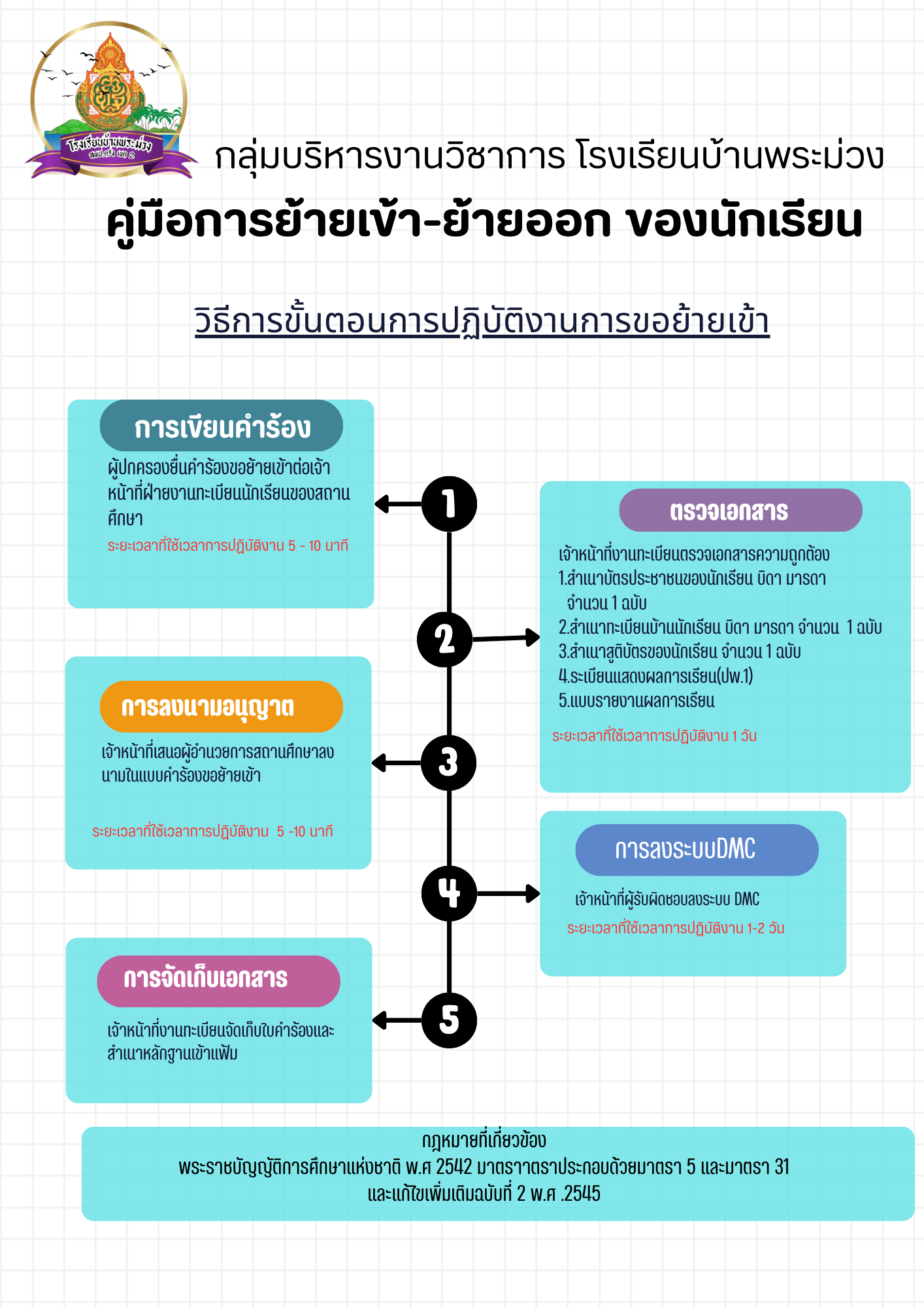 คู่มือปฏิบัติงานงานบริหารงานวิชาการ การย้ายเข้า-ย้ายออกของนักเรียน |