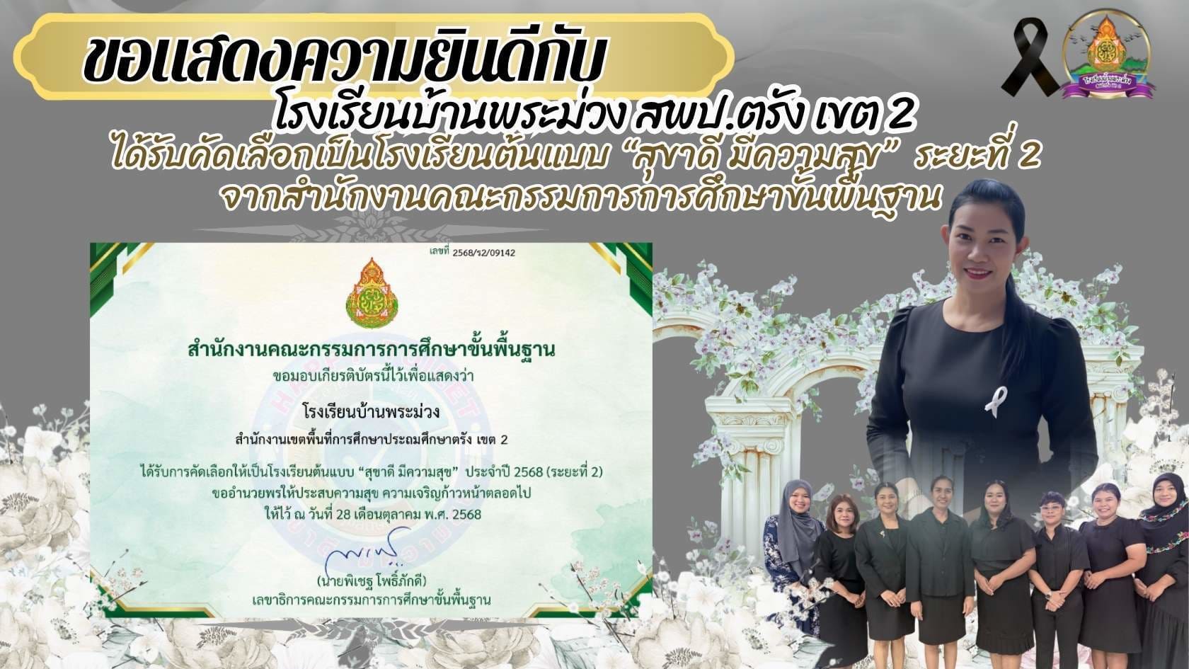 ขอแสดงความยินดีกับโรงเรียนบ้านพระม่วง ได้รับการคัดเลือกให้เป็นโรงเรียนต้นแบบ"สุขาดี มีความสุข" ระยะที่ 2
