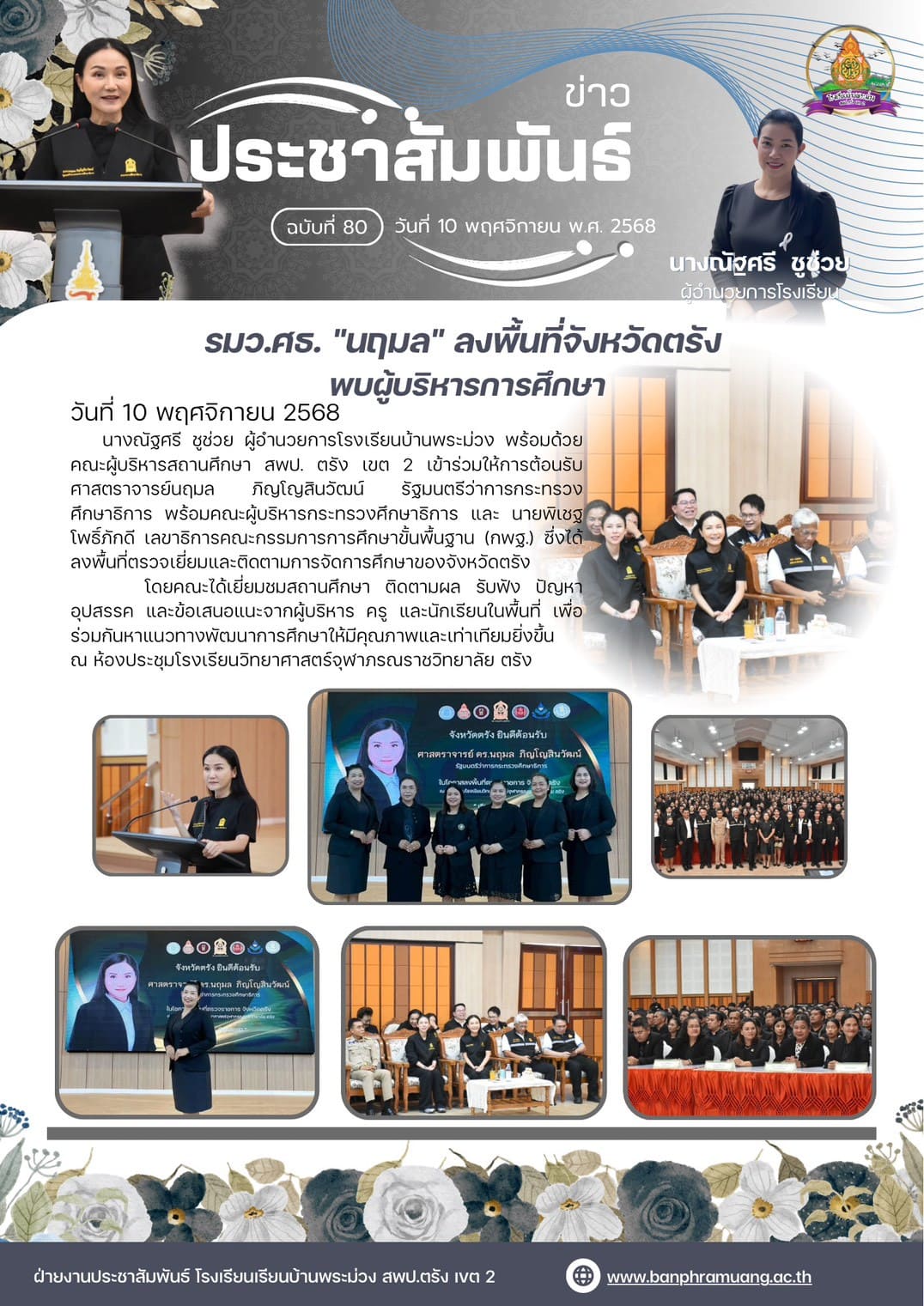 รมว.ศธ.ศาสตราจารย์นฤมล ภิญโญสินวัฒน์ ลงพื้นที่จังหวัดตรัง พบผู้บริหารสถานศึกษา