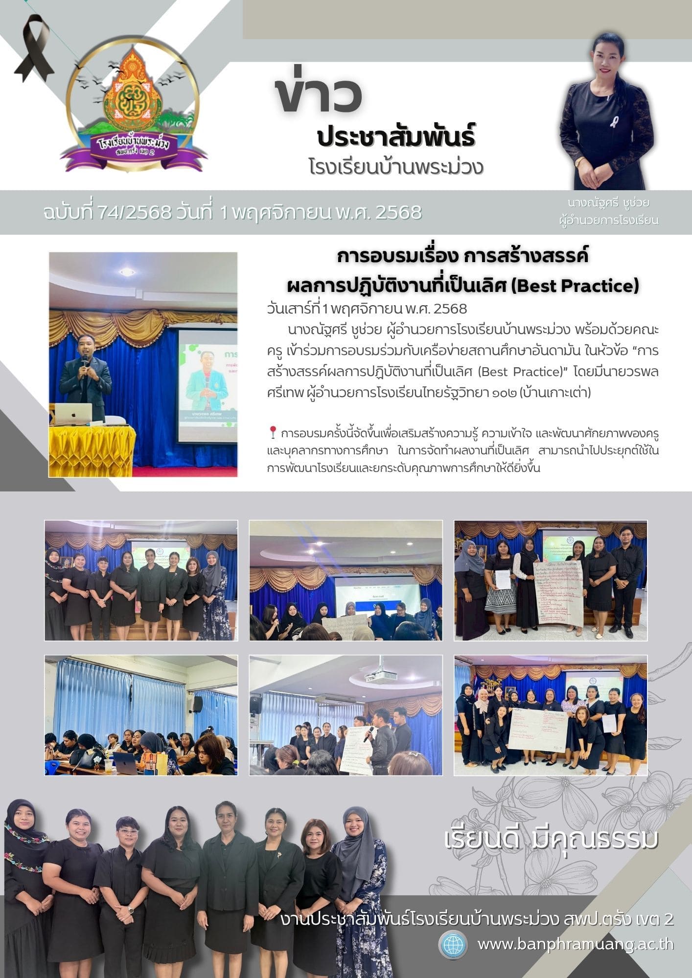 ผู้อำนวยการโรงเรียนบ้านพระม่วง พร้อมด้วยคณะครู เข้าร่วมการอบรมร่วมกับเครือข่ายสถานศึกษาอันดามัน ในหัวข้อ “การสร้างสรรค์ผลการปฏิบัติงานที่เป็นเลิศ (Best Practice)”