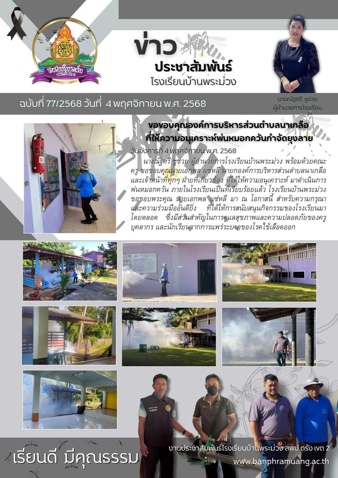 ขอขอบคุณองค์การบริหารส่วนตำบลนาเกลือ ที่ให้ความอนุเคราะห์พ่นควันกำจัดยุงลาย